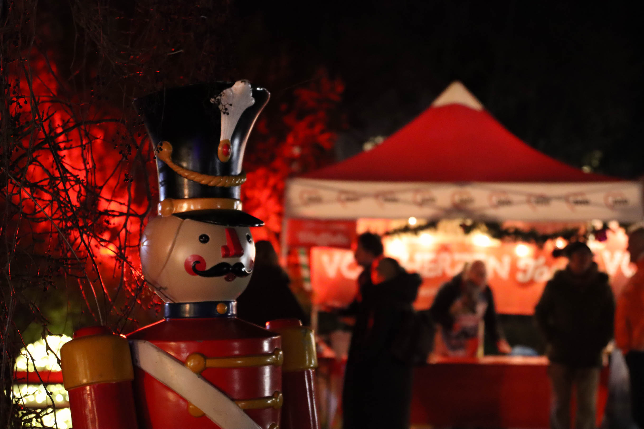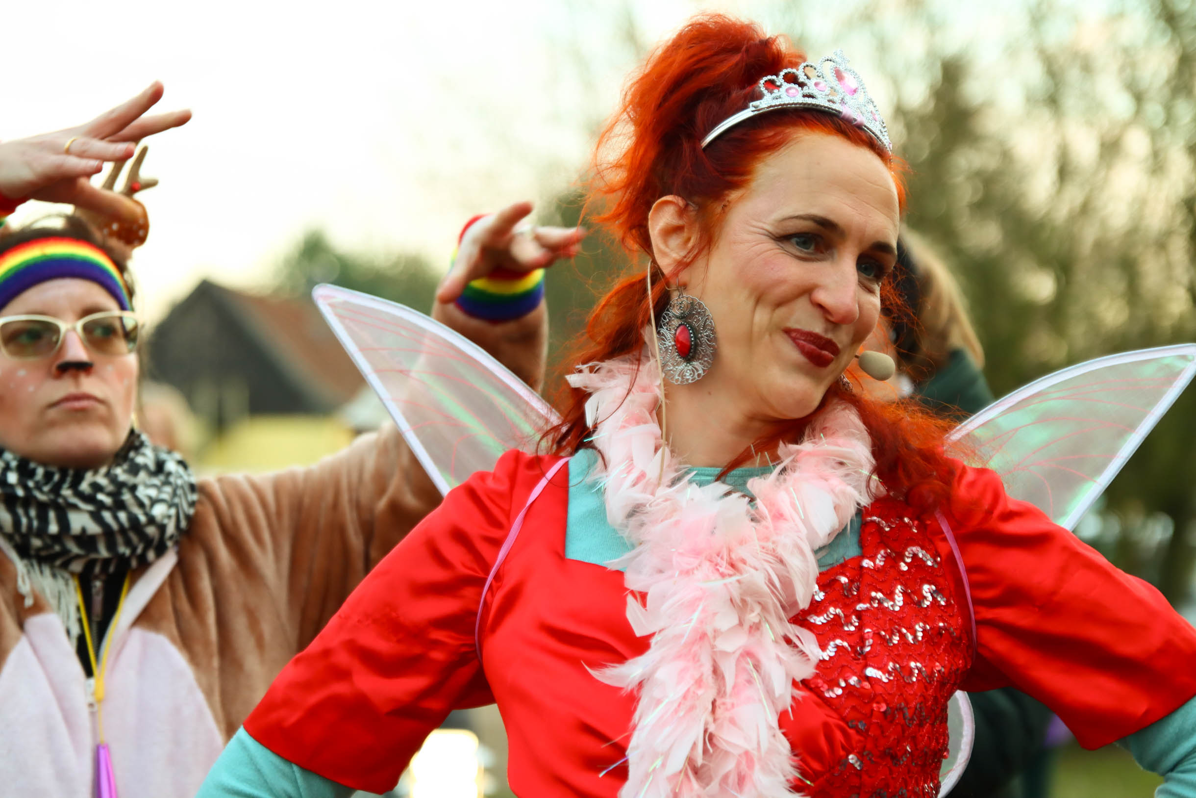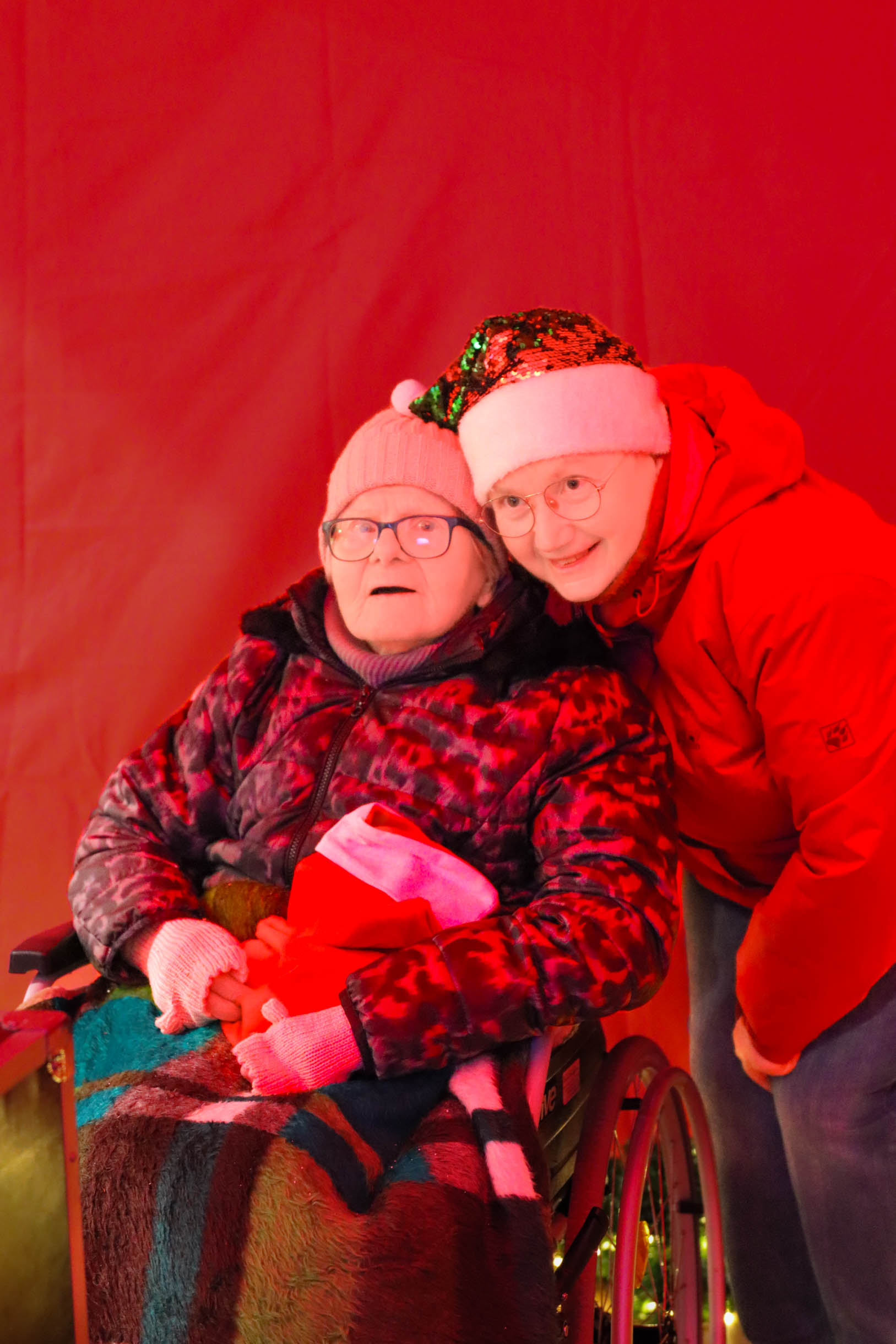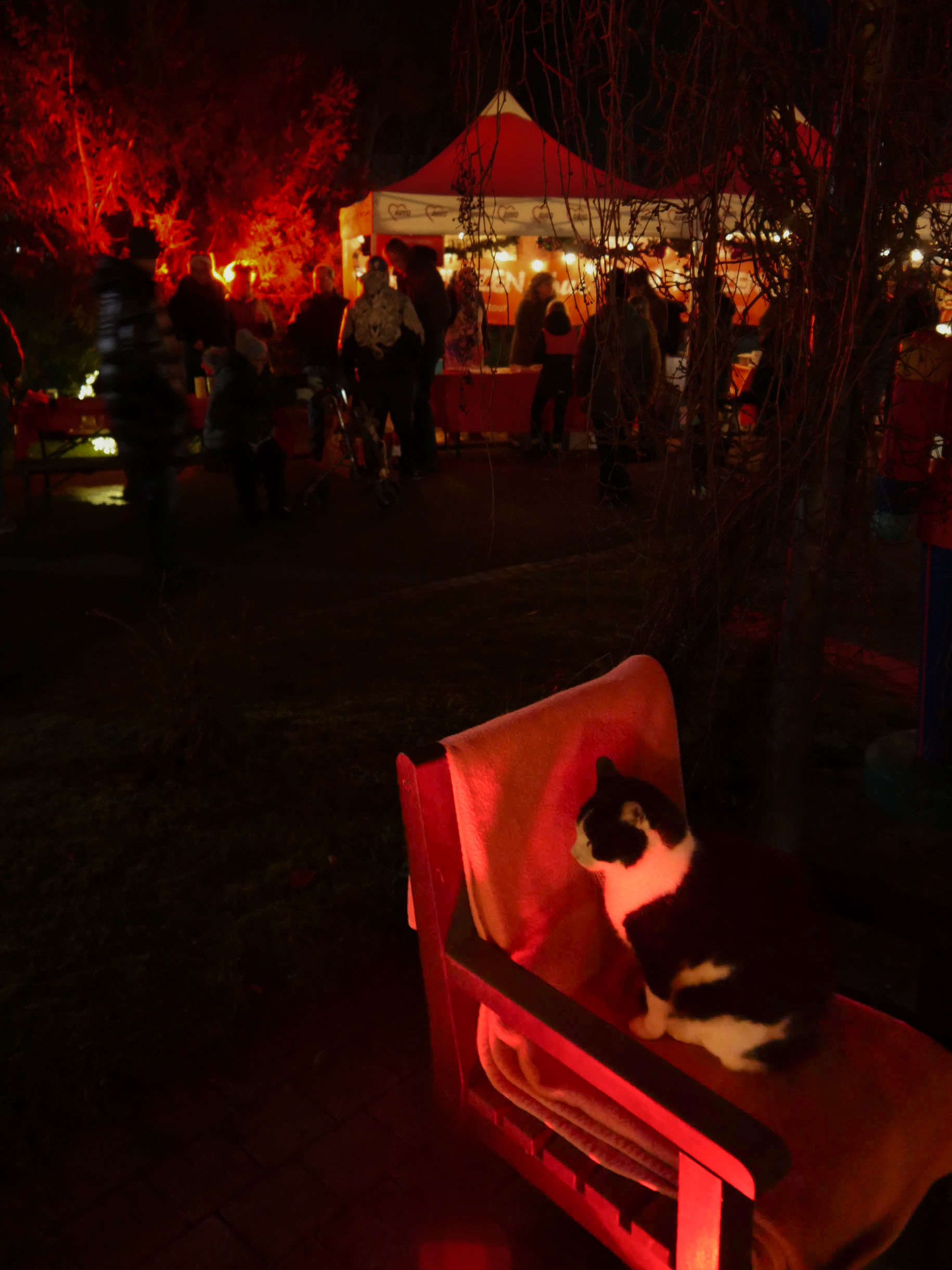 Viele Menschen aus den Einrichtungen in der Region und ihre Angehörige waren gekommen, unter anderem auch Sylvia Bzola. Sie begleitete spontan Zauberfee Lilli auf einer sechsseitigen Mundharmonika. Das Spielen auf dem außergewöhnlichen Musik-Instrument habe ihr Vater ihr beigebracht, erzählte sie. Aufwärmen konnten sich die Besucher*innen an einer Feuerschale, für schöne Weihnachtsgeschenke gab es einen Keramikstand. Auch eine Nachbarskatze „verirrte“ sich auf das Gelände und bat sehr erfolgreich um kleine Leckerlies. Besonders die Kinder waren fasziniert von einem jonglierenden Rentier und Alfreds Bunter Ballonwelt, an der Fotobox von Kevin Pratsch (Photobooth-Fun) standen die Gäste Schlange, um ein lustiges Foto mit Rentier-Geweih oder anderen Utensilien zu schießen. Am Glücksrad gab es tolle Preise zu gewinnen, gespendet von den Mitarbeitenden des Seniorenzentrums.