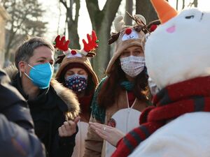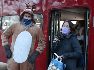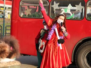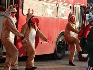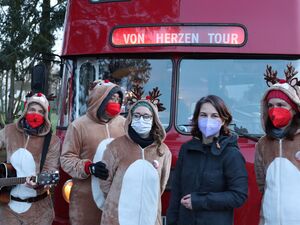 Am Nachmittag war dann wieder unser weihnachtlich geschmückter Doppeldecker-Bus unterwegs. Während der Fahrt durch Potsdam übten Geschenkefee Lilly, ihr bester Freund Otto und die vielen Rentiere für ihren Auftritt - das Kindertheater mit Gitarrenbegleitung über die Suche nach Geschenken im Winterwald. Stationen waren der Stadtteil Am Schlaatz und eine AWO Einrichtung in Drewitz.