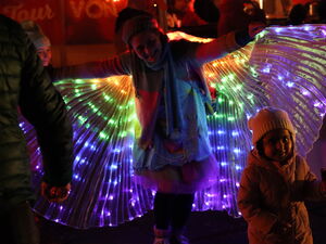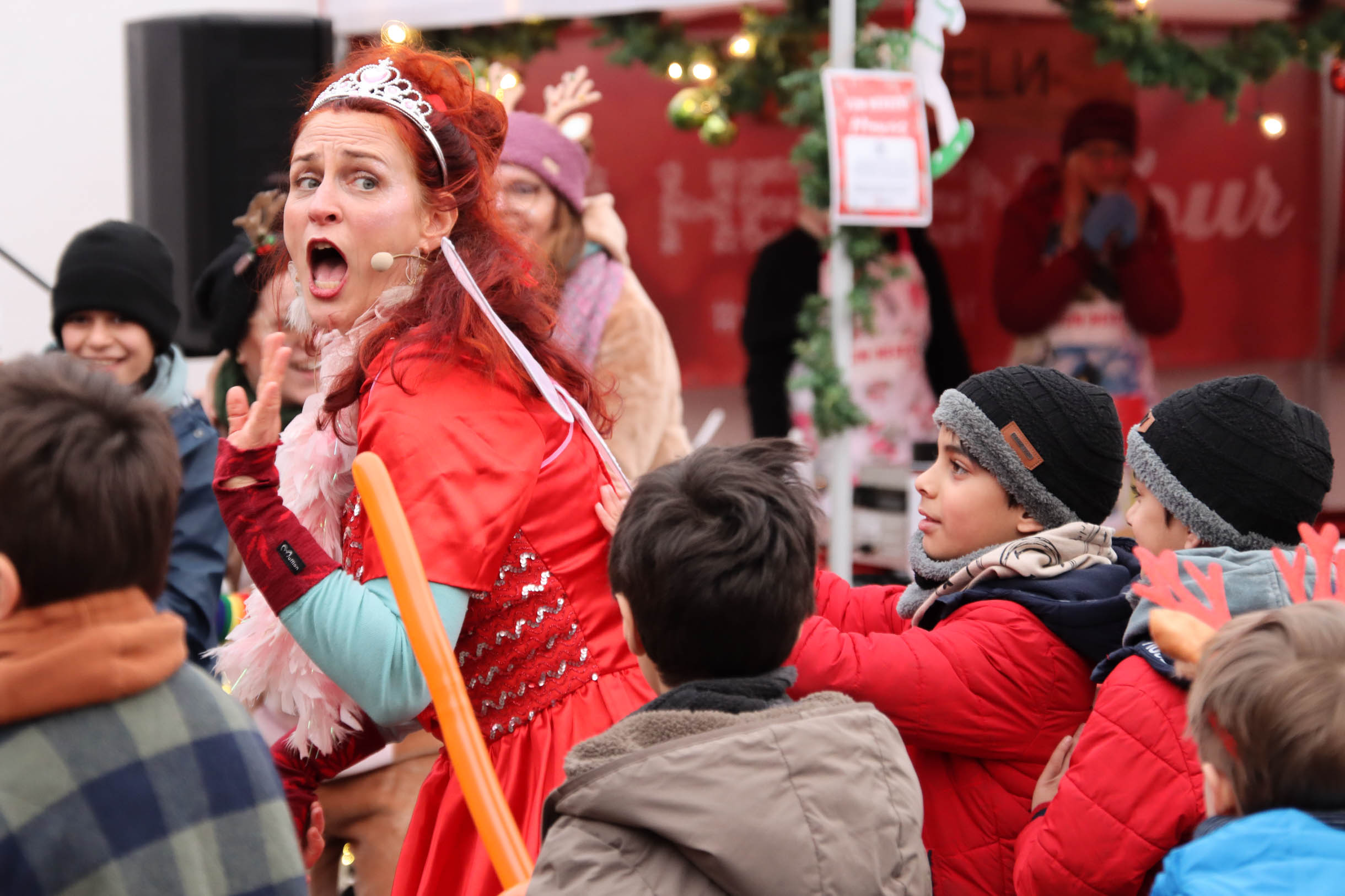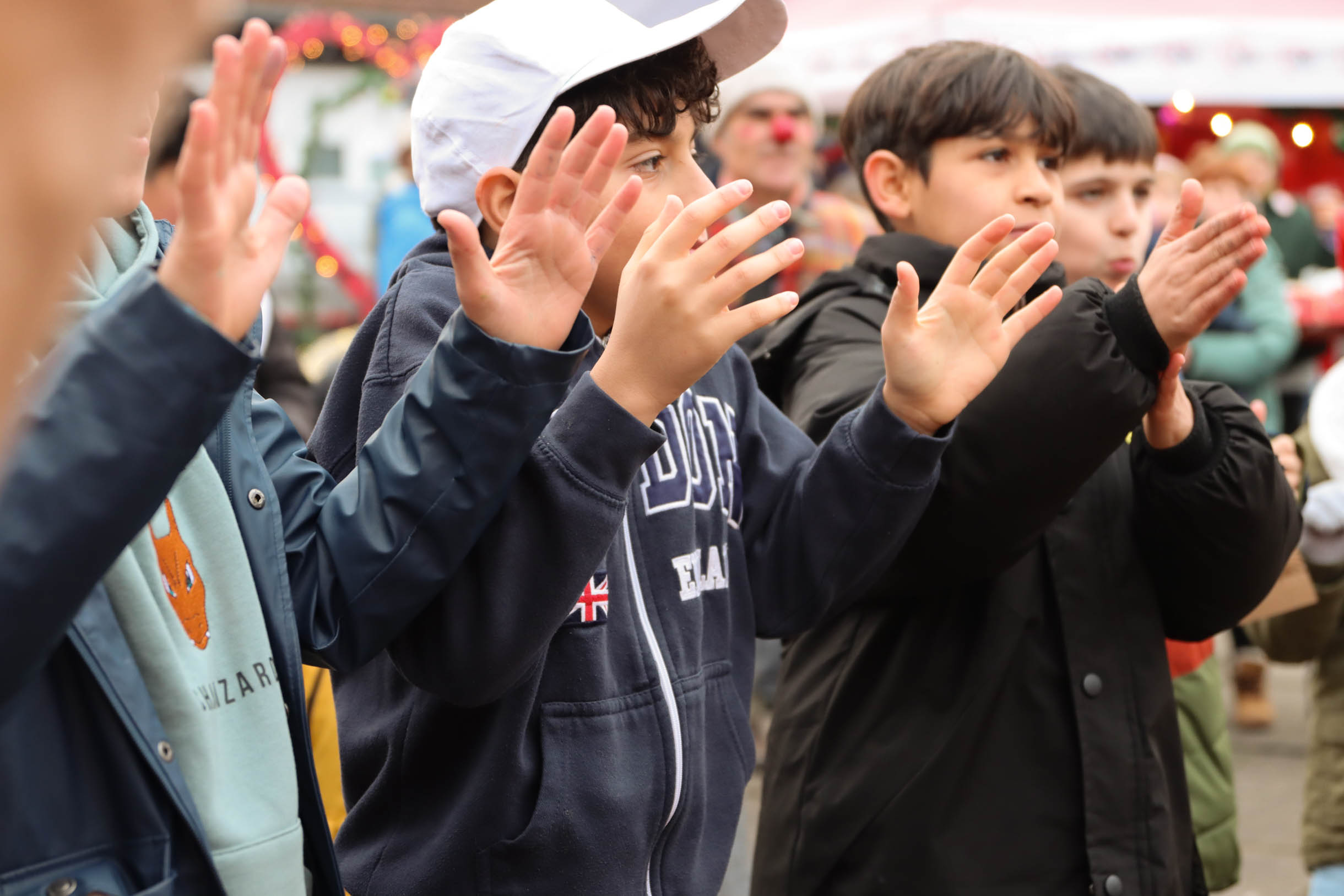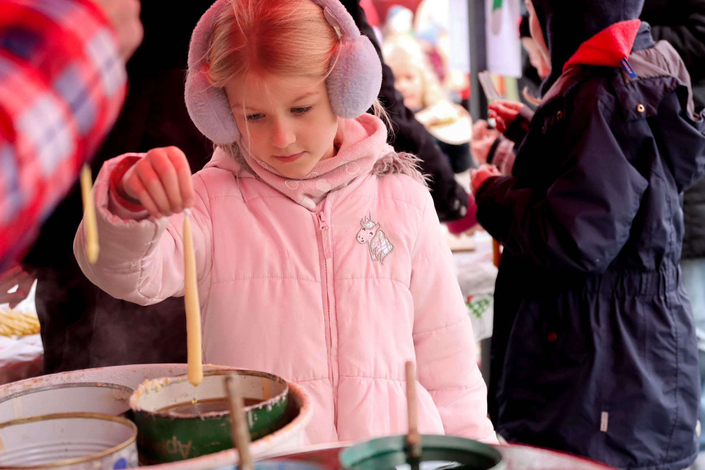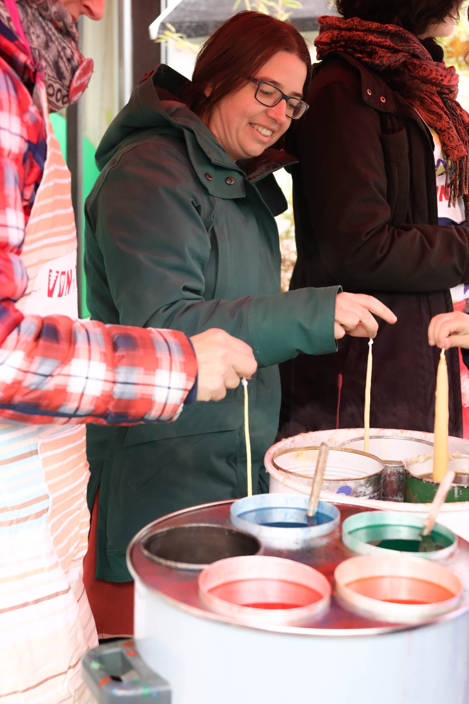 Richtig voll war es zwischenzeitlich auf dem Platz, viele Familien mit ihren Kindern wollten sich das nicht entgehen lassen. Geschätzt 500 Besucher*innen freuten sich über Waffeln, Kaiserschmarrn und reichlich Bratwürste vom Grill. Die Süßspeisen gingen unglaublich schnell weg, sodass nach rund zwei Stunden fast alle Vorräte aufgebraucht waren. Fast alle Kinder hatten irgendwann ein Luftballon-Schwert in der Hand oder eine Krone auf dem Kopf. Vor Alfreds Bunter Ballonwelt in den Räumen des Familienzentrums war die Warteschlange diesmal nämlich besonders lang, so wie auch an der Fotobox von Kevin Pratsch (Photobooth-Fun) und im Kamishibai-Erzähltheater. Großer Andrang herrschte natürlich vor dem fast schon obligatorischen Kerzenziehen draußen vor dem Eingang.